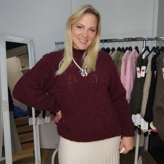 Bouclépullover "Josy" in Weinrot